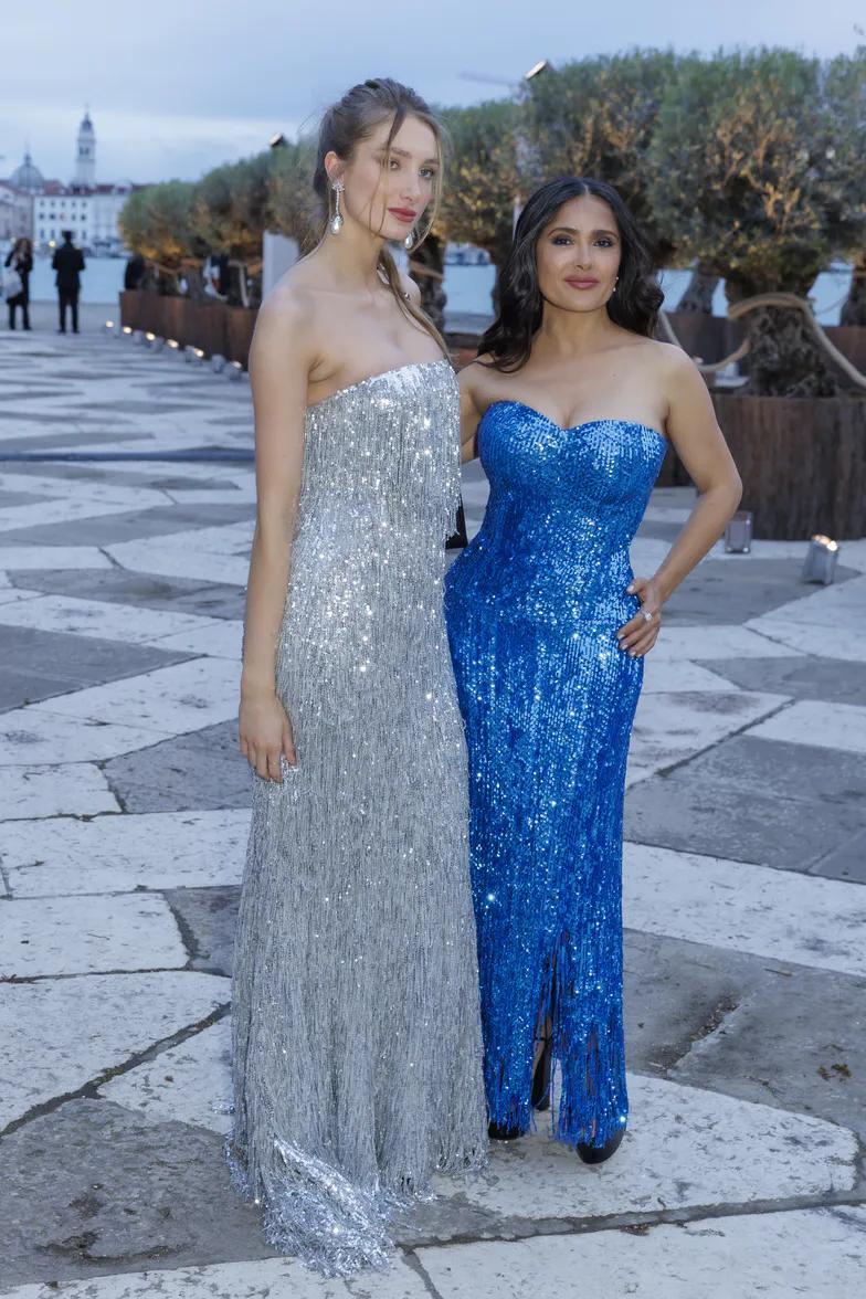 Элегантные женщины были сфотографированы во время мероприятия «Fondazione Cini, Isola Di San Giorgio», когда они были одеты в расшитые пайетками платья (Сальма в синем, Матильда в серебре) и терпеливо позировали для фото, как и подобает настоящим профессионалам. 57-летняя любительница дорогих брендов дополнила свой эффектный образ сумкой Balenciaga стоимостью 10 000 долларов.
