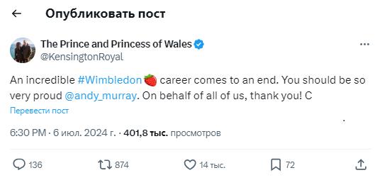 Невероятная карьера на Уимблдоне подходит к концу. Энди Мюррей – ты должен очень гордиться собой. От имени всех нас спасибо! С